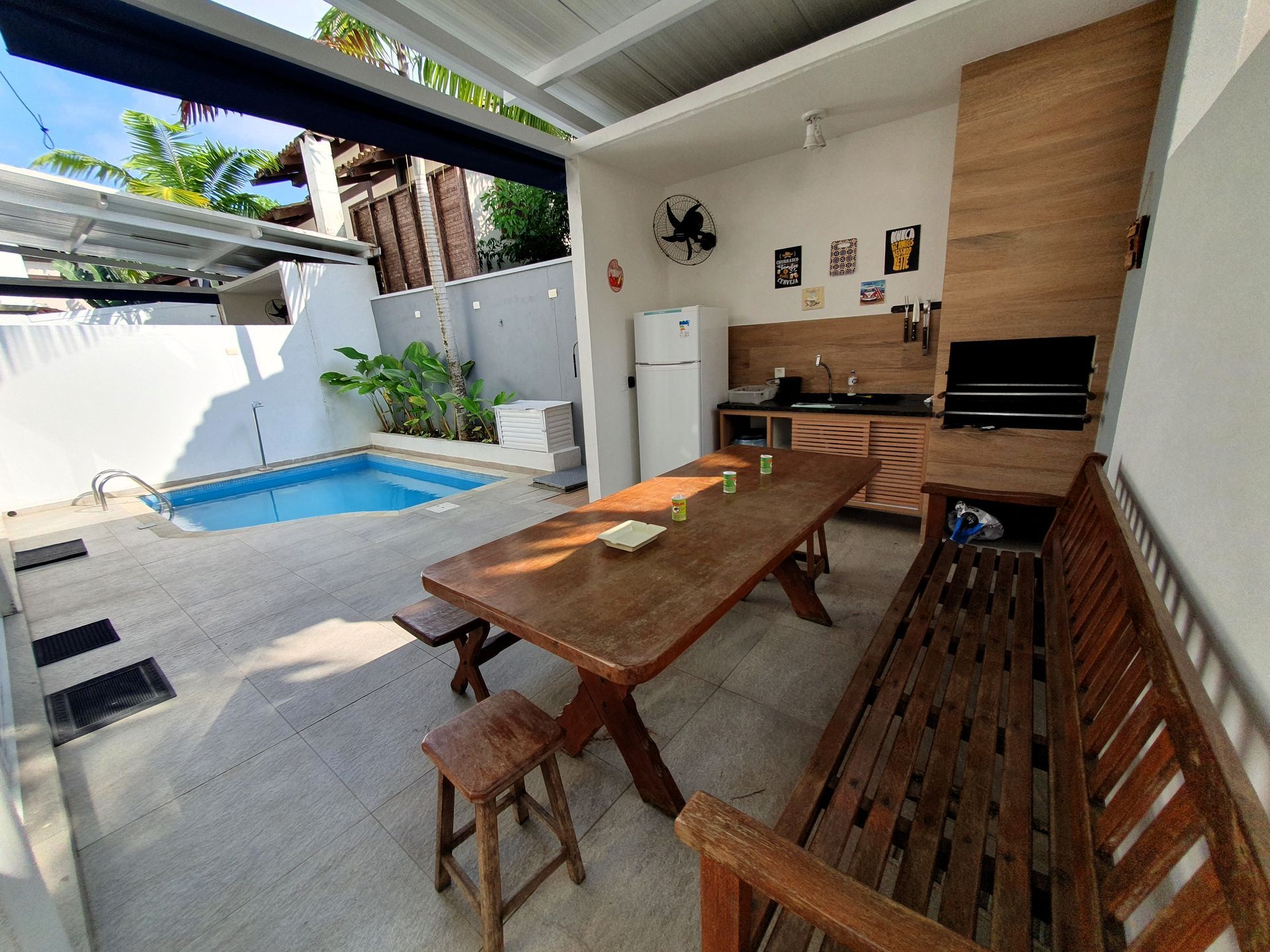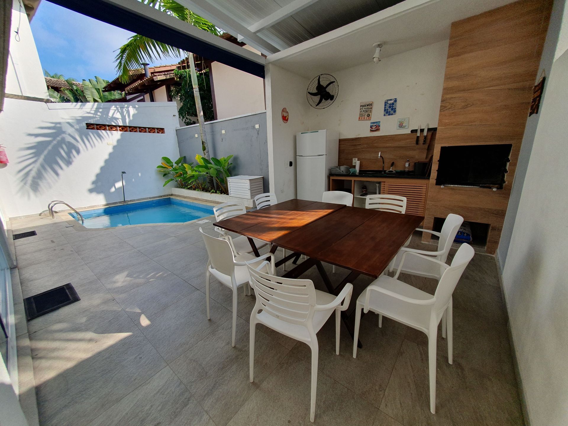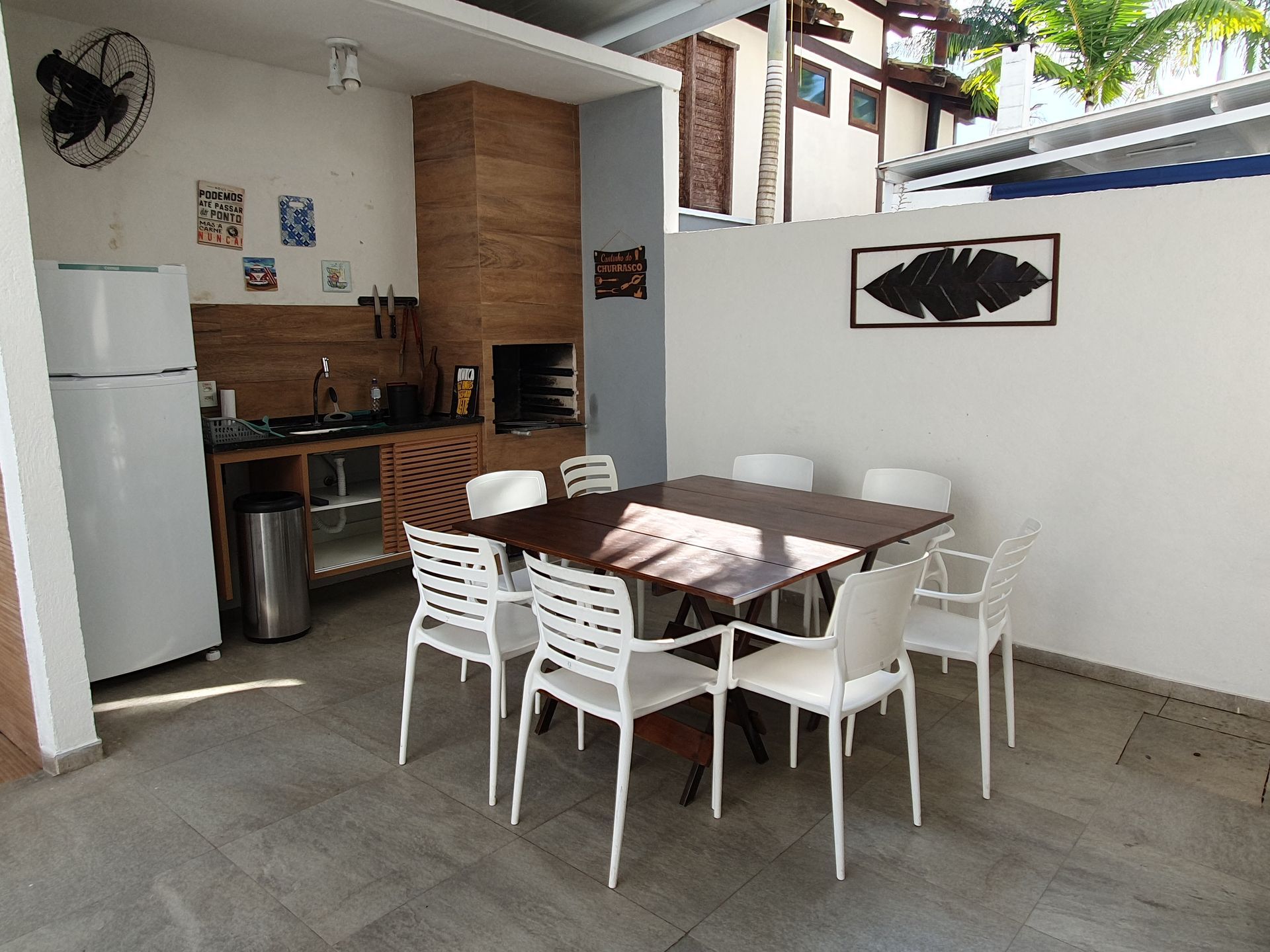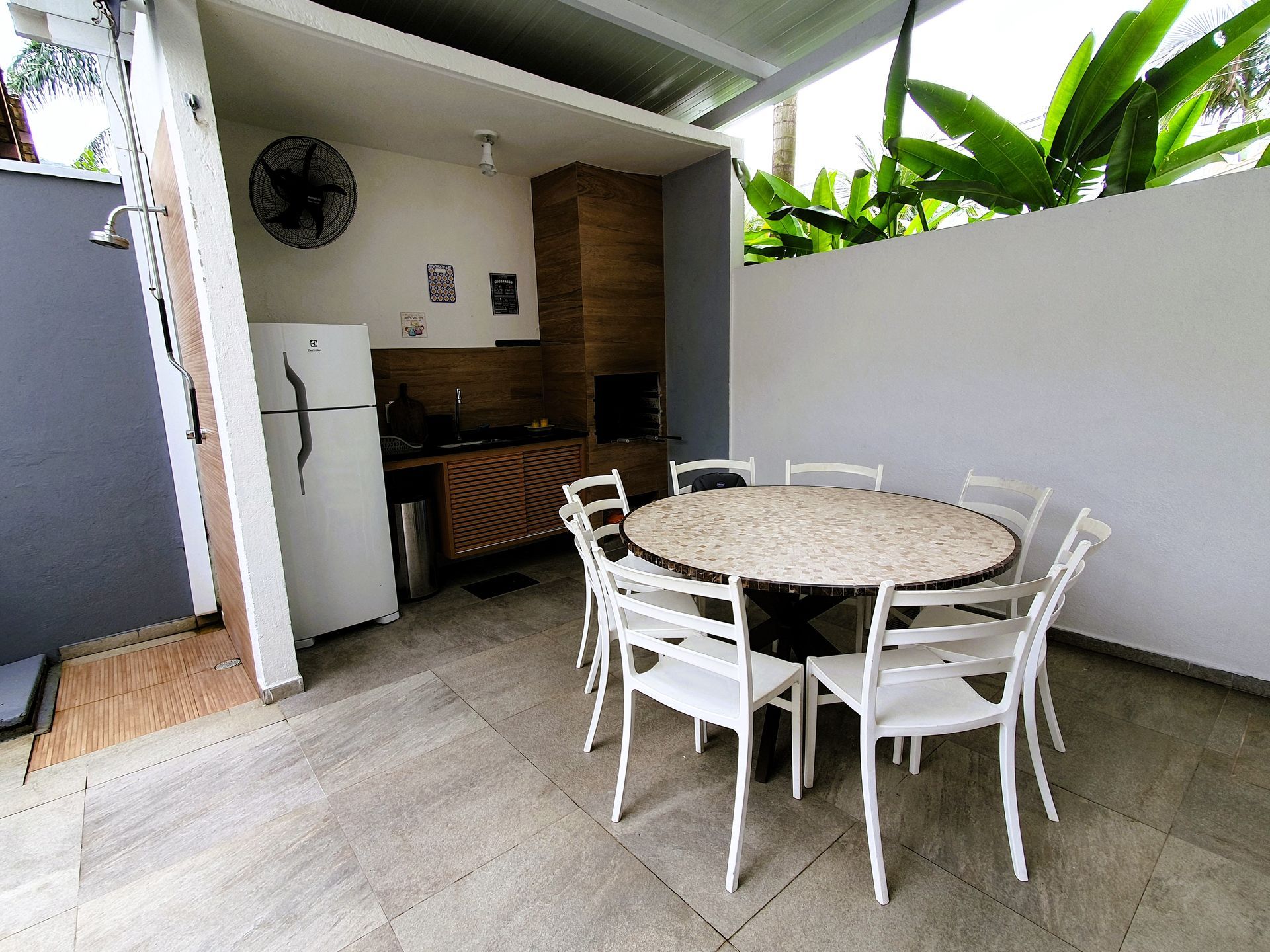 Área externa com churrasqueira integrada à piscina. Wi-Fi grátis, SmartTV, Sky.3 vagas de garagem. Serviço de praia (gazebo, guarda-sois, cadeiras).