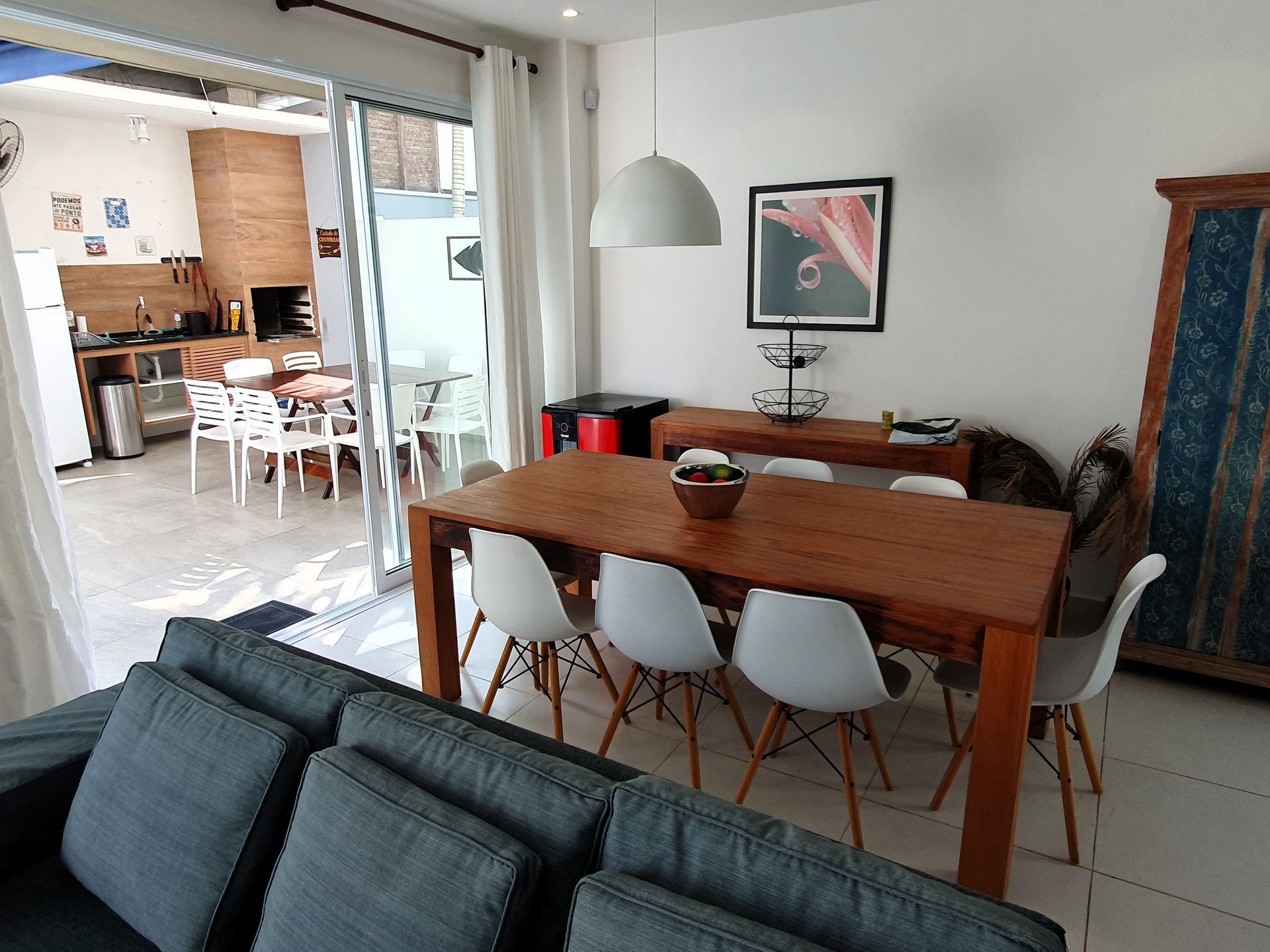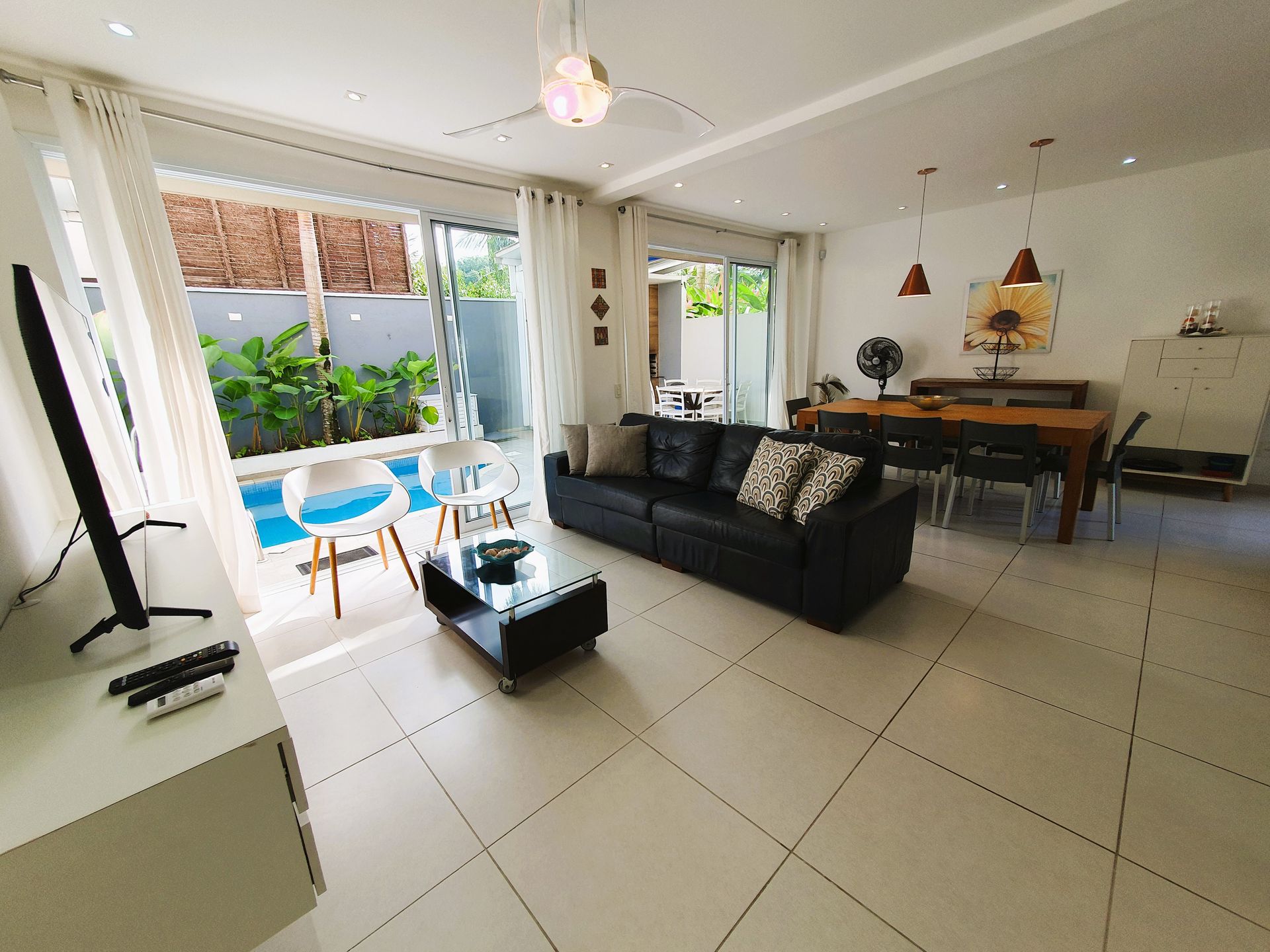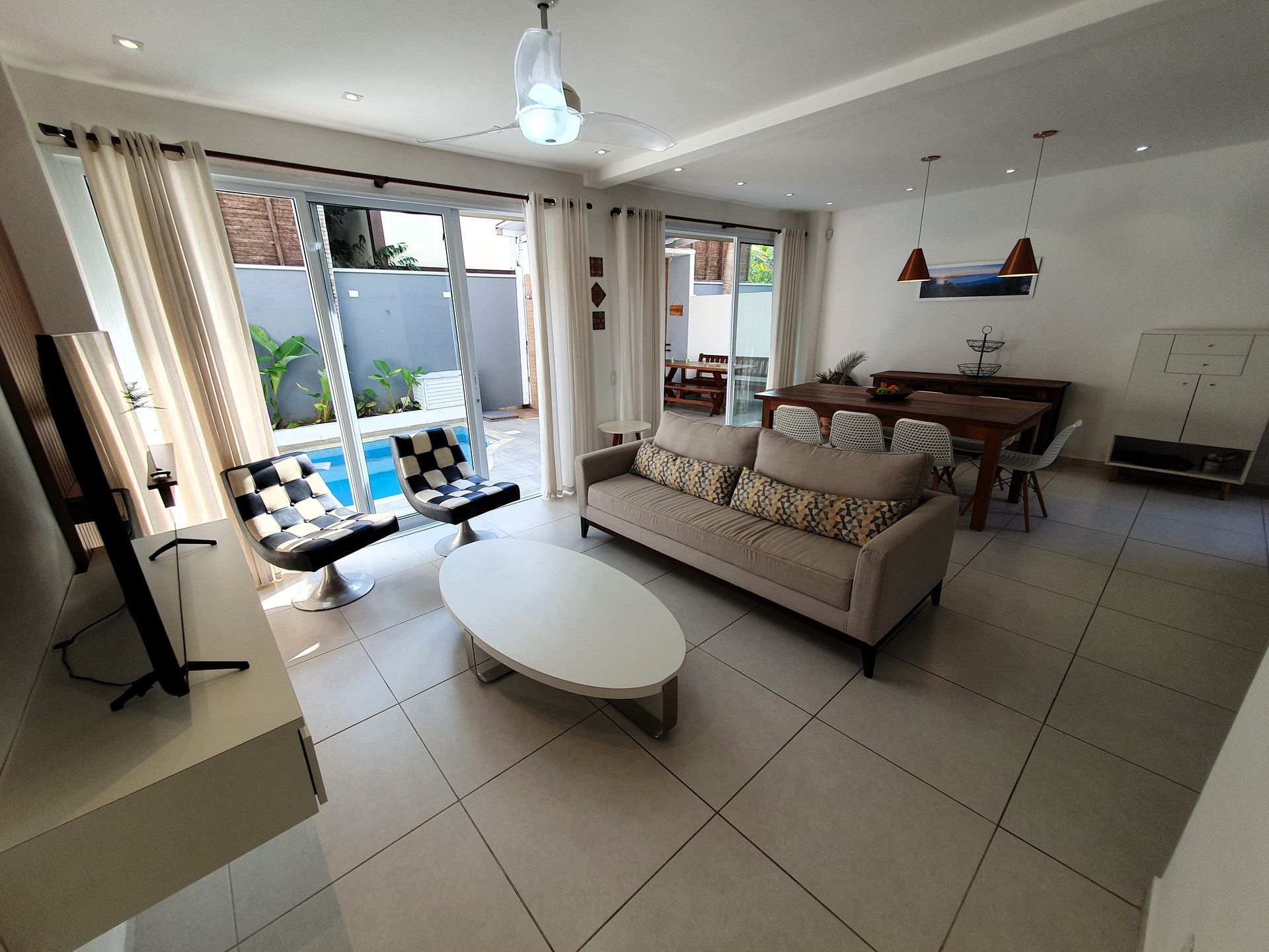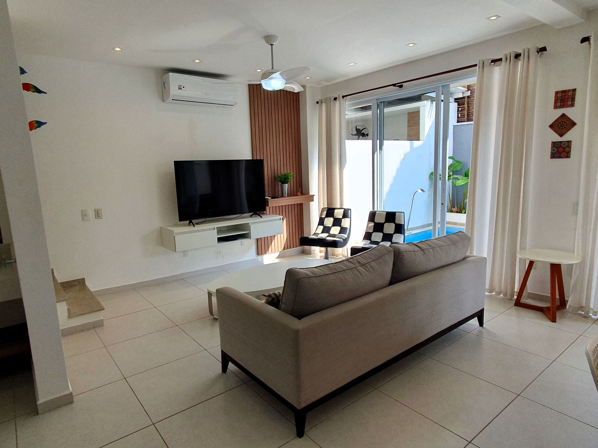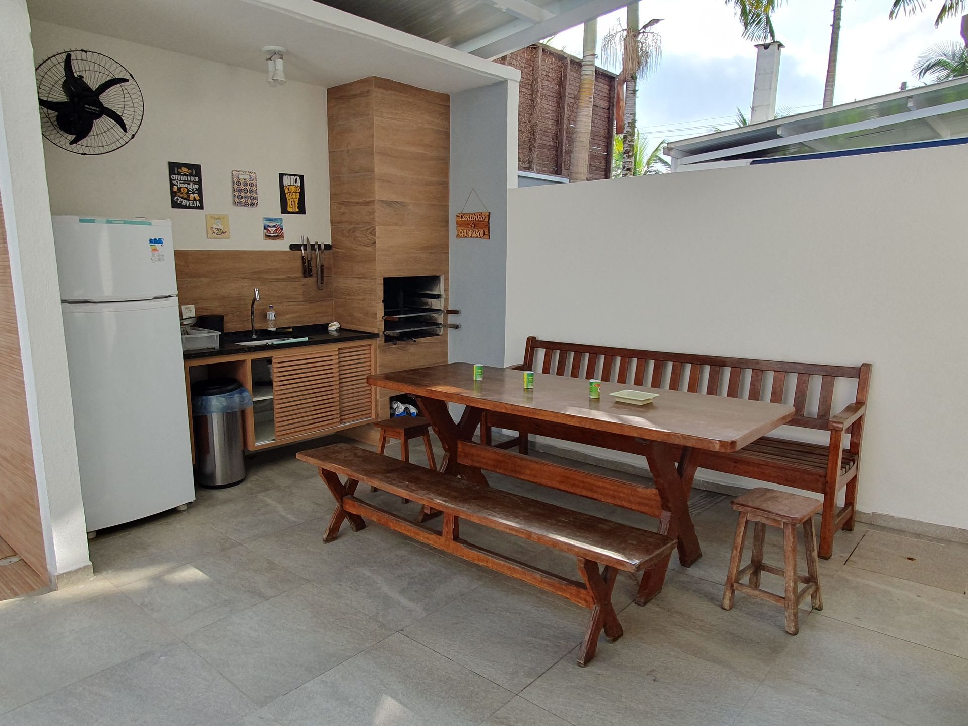 Área externa com churrasqueira integrada à piscina. Wi-Fi grátis, SmartTV, Sky.3 vagas de garagem. Serviço de praia (gazebo, guarda-sois, cadeiras).