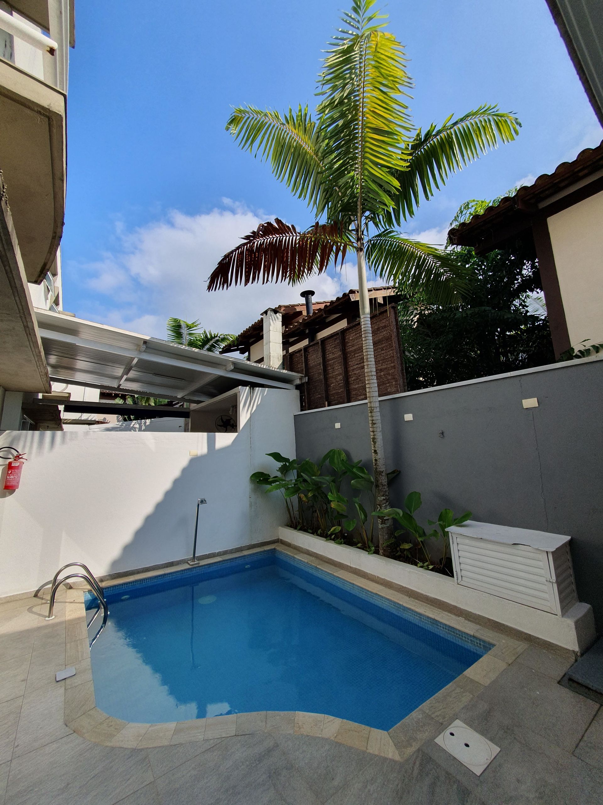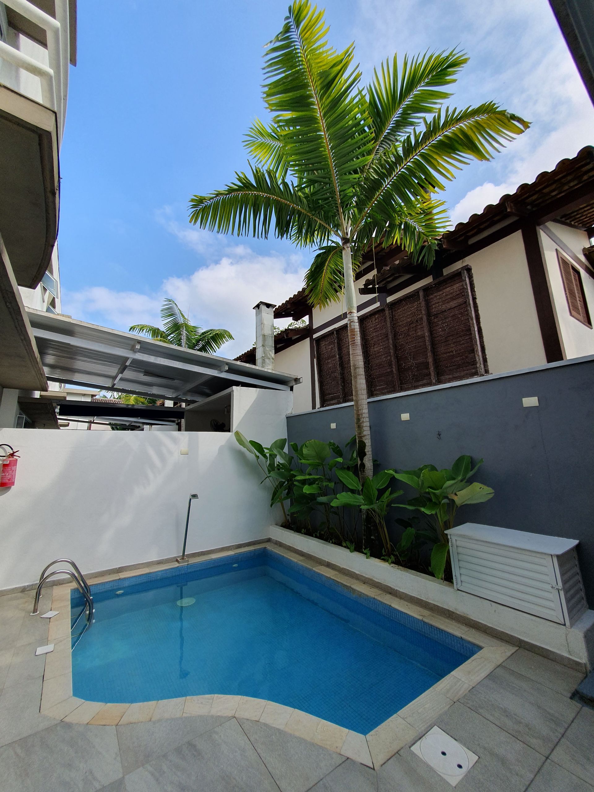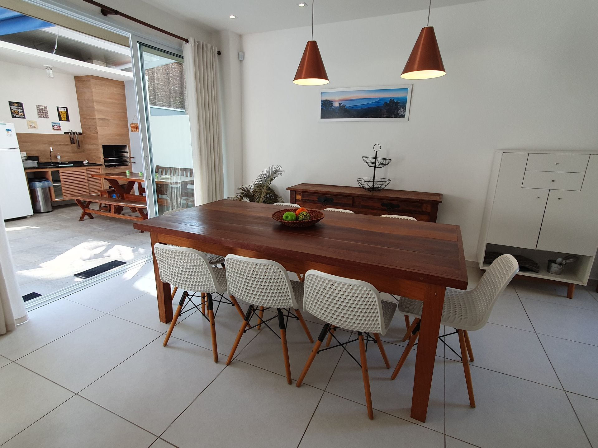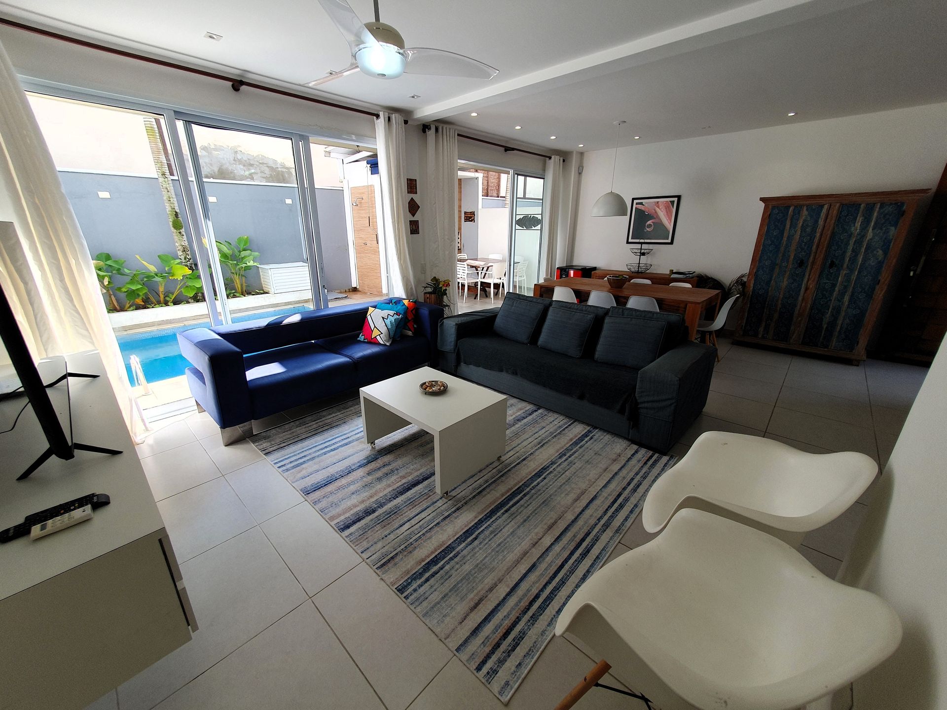Área externa com churrasqueira integrada à piscina. Wi-Fi grátis, SmartTV, Sky.3 vagas de garagem. Serviço de praia (gazebo, guarda-sois, cadeiras).